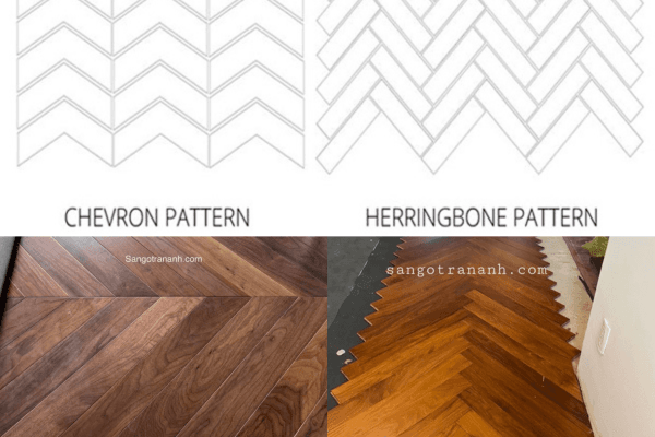 thay vì lát song song, ván sàn sẽ được ghép theo hình mũi tên (xương cá), tạo chuyển động nhẹ nhàng cho không gian.